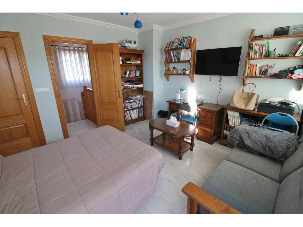 En la planta segunda existe un dormitorio, baño con ducha y balcón con vistas a la piscina.